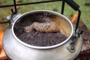 焚き火をおこして放り込んでいたら、なかなかいい感じに仕上がりましたよ。